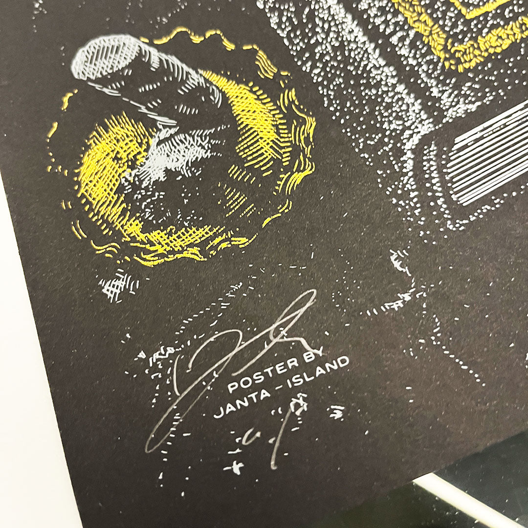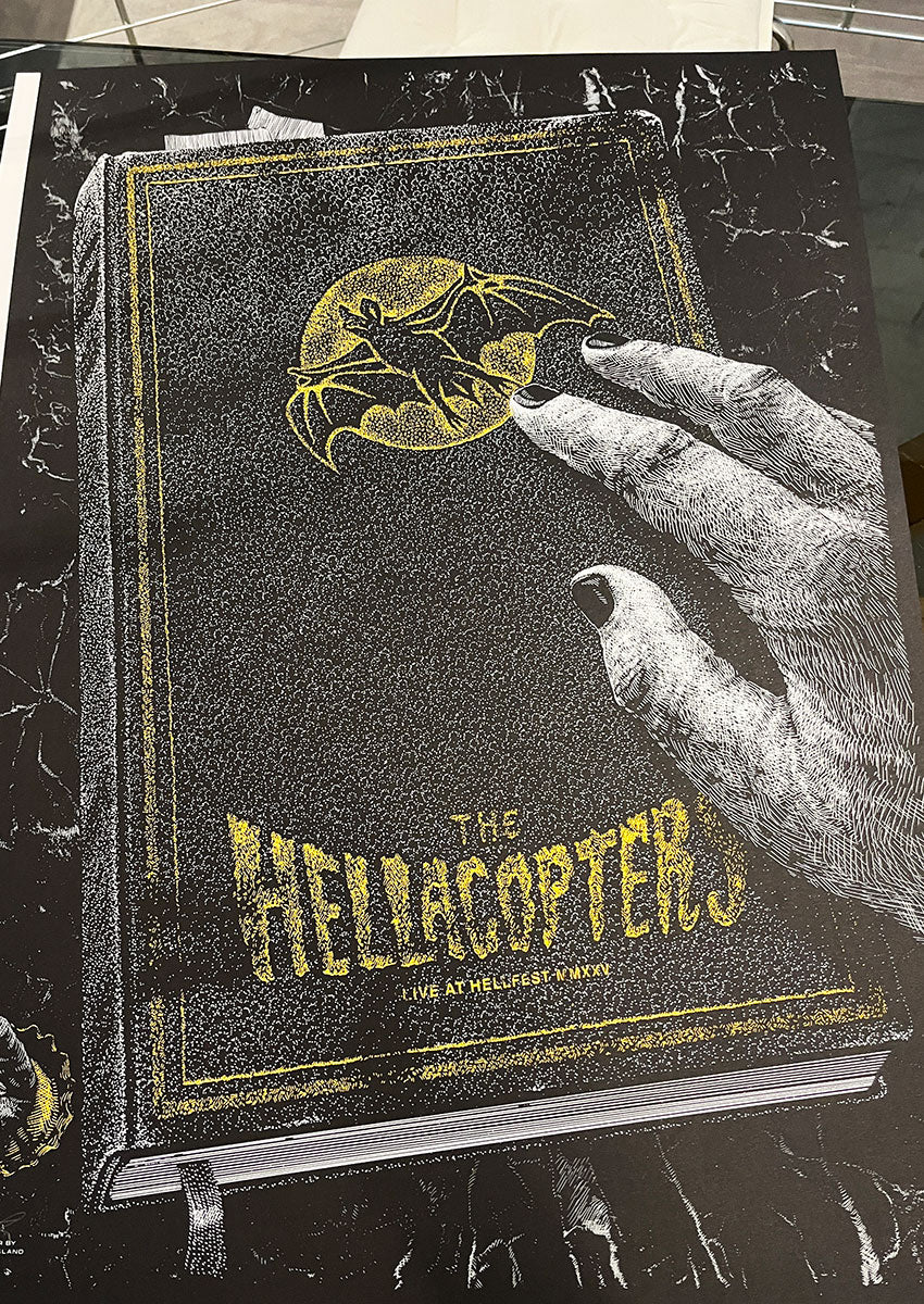 The Hellacopters | Hellfest 2025 Sérigraphie officielle | Concert de Clisson 19.6.25 Design et gravure de Phillip Janta. Sérigraphie 2 couleurs (blanc et dorée) Edition limitée signée de 150 ex (AP).... Voir la description complète du produit