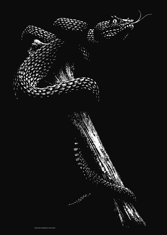 Snake | Sérigraphie d'art Design et gravure de Phillip Janta. Sérigraphie sur papier noir 200 g/m². Edition signée Format 50 x 70 cm. A propos de l'artiste: Graphiste et illustrateur allemand, Phillip Janta... Voir la description complète du produit