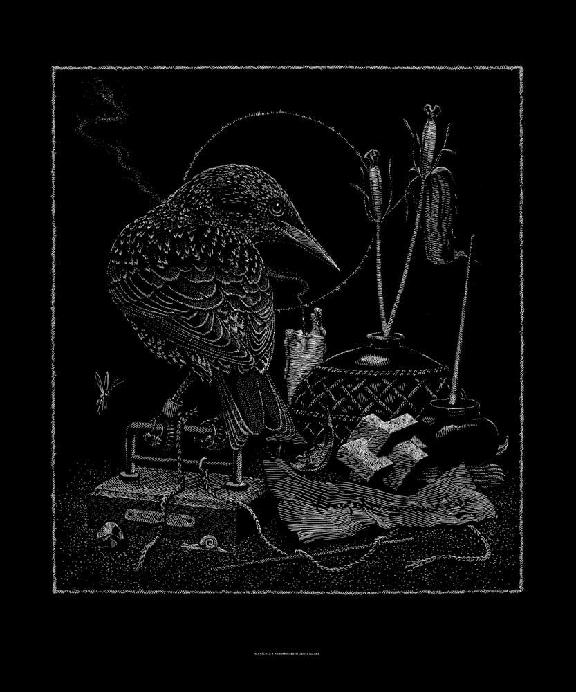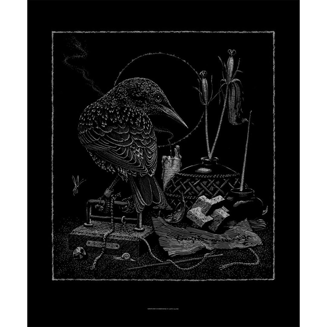 Raven | Sérigraphie d'art Design et gravure de Phillip Janta. Sérigraphie monochrome (blanc) sur papier noir 270 g/m². Edition signée Format 50 x 62 cm. A propos de l'artiste: Graphiste et... Voir la description complète du produit