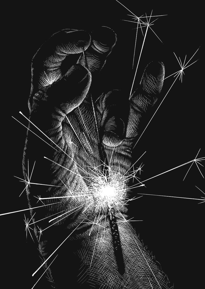 Etincelles | Sérigraphie d'art Design et gravure de Phillip Janta. Sérigraphie monochrome (blanc) sur papier noir 270 g/m². Edition signée Format 50 x 70 cm. A propos de l'artiste: Graphiste et... Voir la description complète du produit