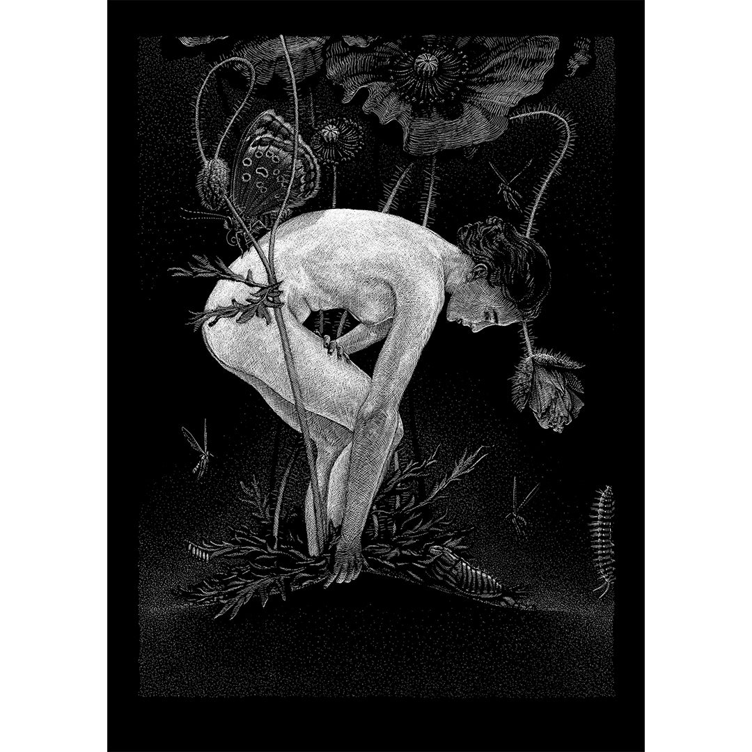 Covered | Sérigraphie d'art Design et gravure de Phillip Janta. Sérigraphie monochrome (blanc) sur papier noir 270 g/m². Edition limité de 50 ex numérotée et signée Grand format 70 x 76 cm.... Voir la description complète du produit
