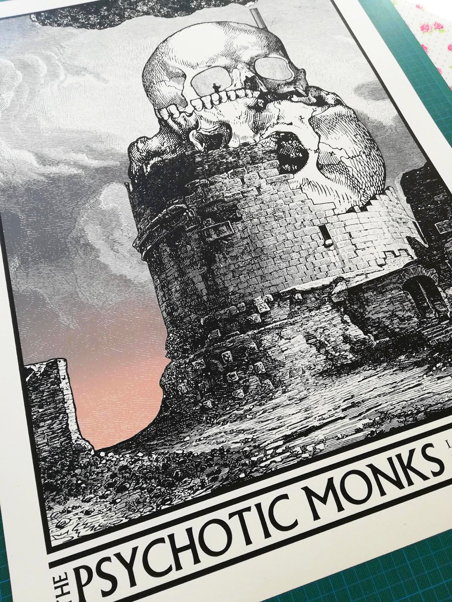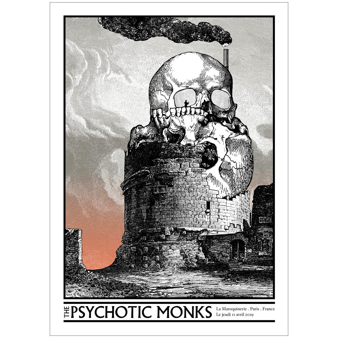 Artiste: Cyrille Rousseau Sérigraphie officielle du concert pour The Psychotic Monks. La Maroquinerie, Paris avril 2019. 2 couleurs sur papier Serio White 280gr Signée et numérotée. Edition limitée de 40... Voir la description complète du produit